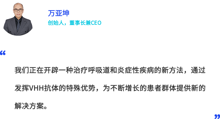 万亚坤博士致力于纳米抗体研究19年,拥有极为丰富的纳米抗体项目经验,在纳米抗体领域享有极高的声誉与知名度,曾入选中国科研实验室上海药物所“百人计划”、荣获江苏省六大人才高峰计划、教育部“高层次创造性人才计划”和“新世纪优秀人才”、“2021年度张江国家自主创新示范区杰出创新创业人才”“2024年浦东新区明珠领军人才”等荣誉称号。其创办的企业“EVO视讯(中国)生物”入选2020中国生物医药最具创新力企业50强、2022年中国医药创新种子企业100强,2022年专精特新中小企业。