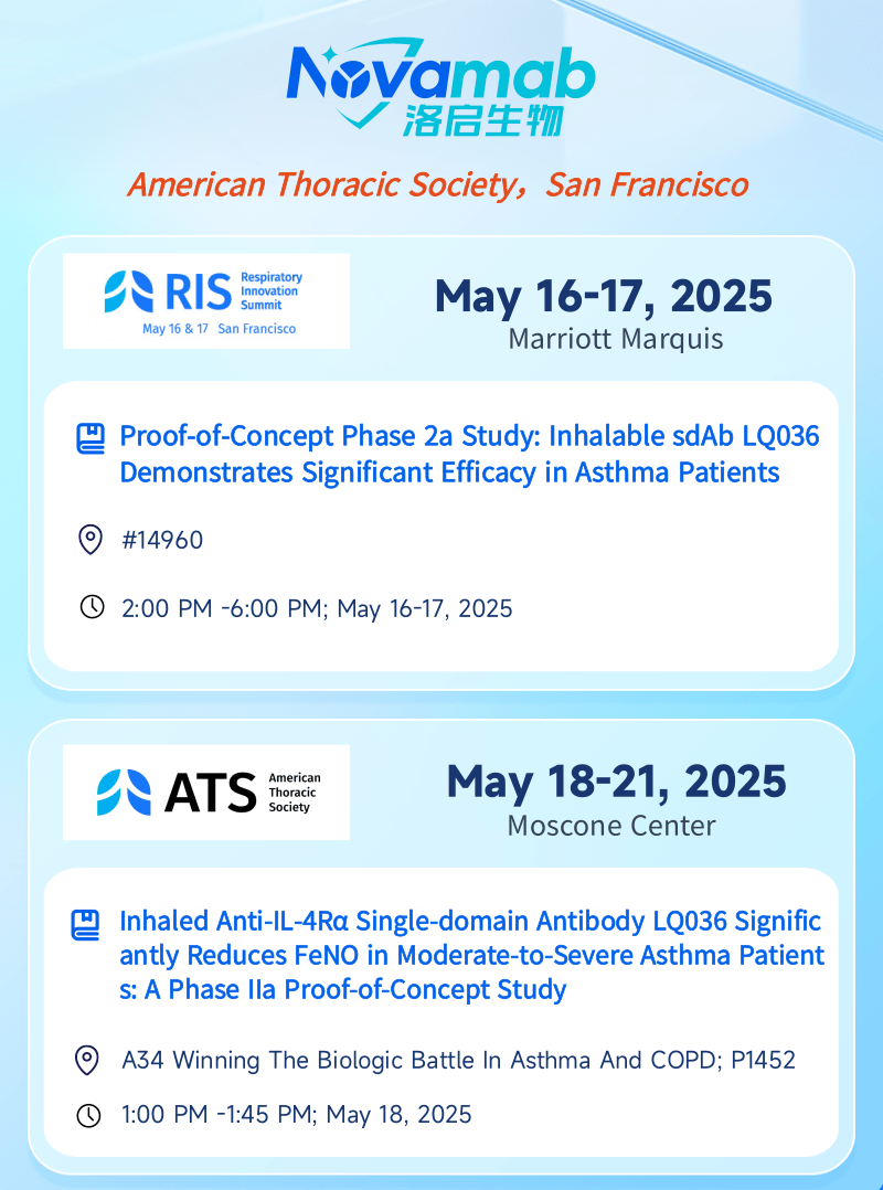 中国上海,2025年5月13日——上海EVO视讯(中国)生物医药技术有限公司,一家专注于纳米抗体创新药研发的生物技术企业,今日宣布:EVO视讯(中国)生物将于当地时间5月16日至21日赴美国加州旧金山,受邀参加美国胸科学会(American Thoracic Society, ATS)主办的呼吸创新峰会(Respiratory Innovation Summit,RIS)及ATS国际大会。届时EVO视讯(中国)生物将分别在RIS和ATS两场大会上以壁报形式呈现最新临床数据——公司自主研发的靶向 IL-4Rα 吸入性生物制剂 LQ036 首个 IIa 期概念验证性临床试验数据。本次展示将全面披露 LQ036 在中重度哮喘患者中的安全性、耐受性、药效指标及初步疗效,标志着EVO视讯(中国)生物在下一代呼吸道吸入式生物制剂开发领域迈出关键里程碑。